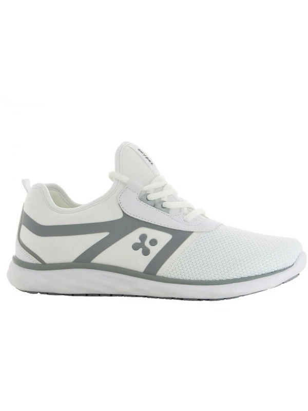 Tige : cuir blanc décor grisPremière de propreté : La chaussure est facile à nettoyer avec un chiffon humideSemelle extérieure : Antidérapant SRC La semelle extérieure en caoutchouc garantit une adhérence maximale, tant sur des sols secs que sur des sols humides, conforme à la norme SRCInformations diverses : – doublure douce,- 3D mesh respirant et nylon ultra souple,- Dessus en mesh 3D respirant et nylon ultra souple pour assurer un climat optimal à vos pieds,- Absorption des chocs. La semelle intermédiaire en EVA procure une atténuation supplémentaire,- Ultra léger La semelle intermédiaire en EVA est particulièrement légère et flexible, – Semelle intérieure amovible. La semelle amovible en Memory Foam vous offre un confort de marche optimal. Si besoin, vous pouvez remplacer les semelles intérieures par vos propres semelles orthopédiques,- Antistatique ESD – La chaussure est équipée d?une pastille conforme à la norme ESD qui favorise la dissipation de l’électricité statique,- Anti-slip SRC – La semelle extérieure en caoutchouc pourvue de la technologie Oxygrip® assure une adhérence maximale, tant sur des sols secs que sur des sols humides, conforme à la norme SRC (SRA + SRB).