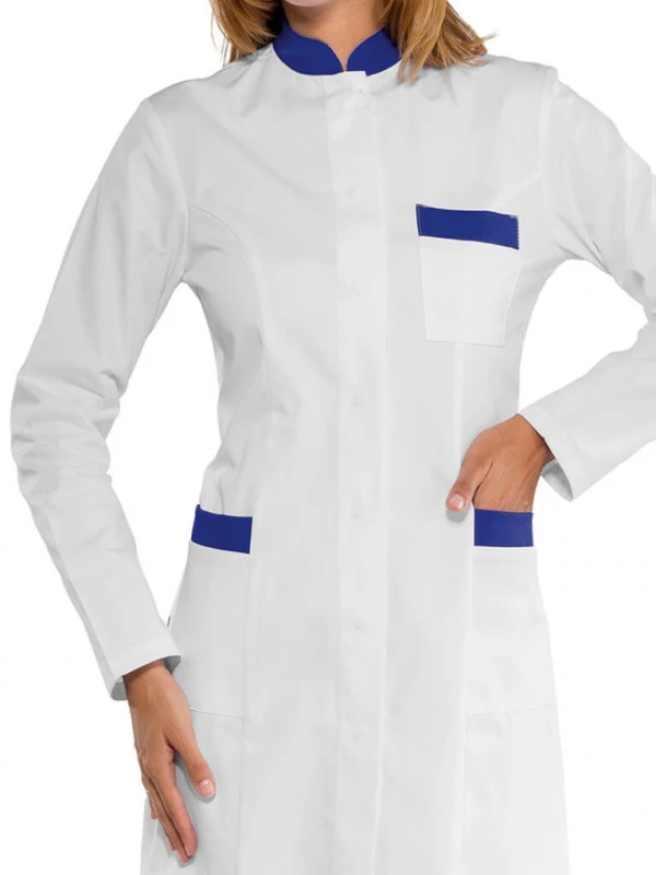 Cette blouse correspond à tous les critères imposés dans les domaines cités précédemment : couleur blanche et taille au corps classique ainsi que des manches longues.Toutefois, la blouse blanche médicale femme est dotée de 3 poches et un col bleus afin de faire ressortir un côté fantaisie simple mais efficace permettant d’assumer sa féminité.