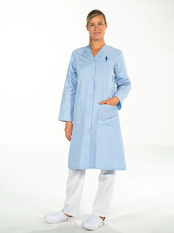 Découvrez la jolie blouse de travail pour femme bleu ciel