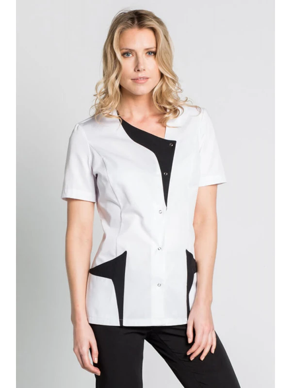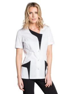 Cette tunique pour estheticienne se compose d’un tissu 67% polyester et 33% coton avec une coupe cintrée et des manches courtes, ses deux poches plaquées sur le devant seront trés pratique quelques soit vos missions. Fermeture croisée sur le devant par boutons pression