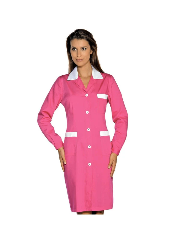 Blouse De Travail Manches Longues Positano Fuchsia Blanc