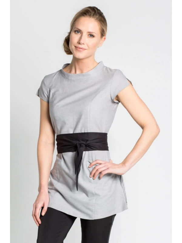 Blouse d?esthétique Oriental Look , coloris gris + 2 ceintures blanche et noire