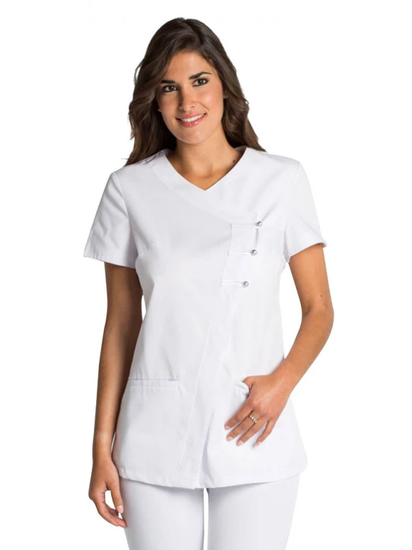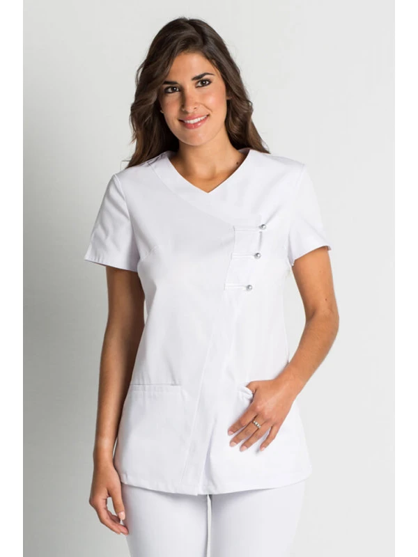 Sa légèreté et sa texture fluide garantissent le confort de celles qui la portent. En aucun cas, elle ne gêne, ce qui permet à la professionnelle d?être libre dans ses mouvements et de s?adonner pleinement à son travail. Cette tunique au style épuré vous fera une silhouette parfaite. Ses grandes poches servent de contenants pour les petits outils qui doivent rester à portée de main.