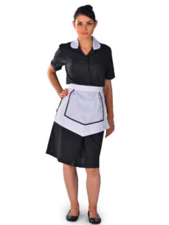 Cette tenue tablier + blouse de femme de chambre est également disponible en couleur bleu nuit