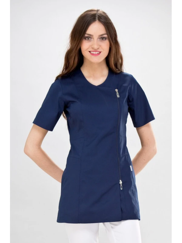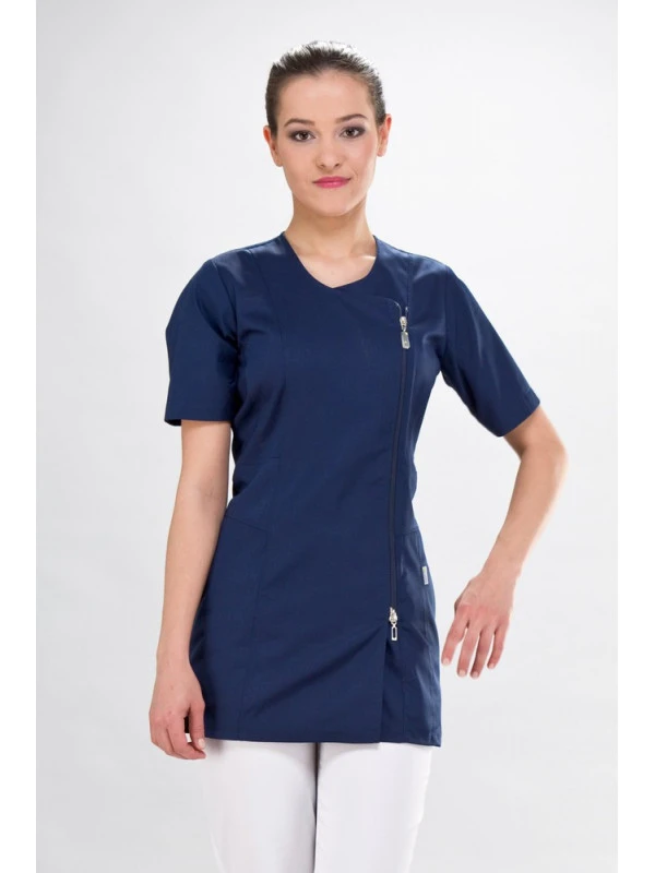 Cette tunique au style moderne, sublime votre look en vous offrant une silhouette parfaite. La coupe chic et moderne de cette blouse médicale vous accompagnera dans votre vie de tous les jours au travail. Cette tunique médicale posséde une encolure de cou légèrement ovale, un ceintrage à la taille, des poches cachées dans les coutures latérales et une fermeture asymétrique par fermeture éclair sur le côté gauche.