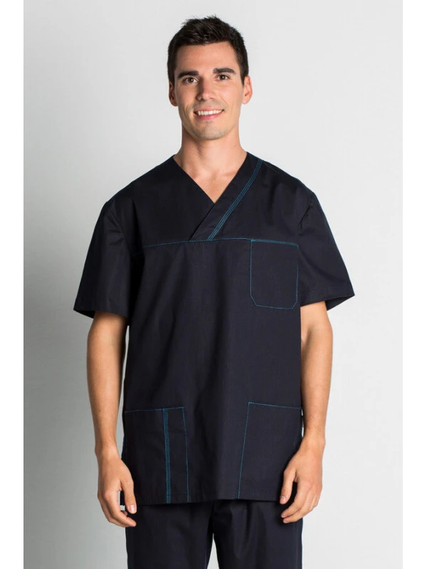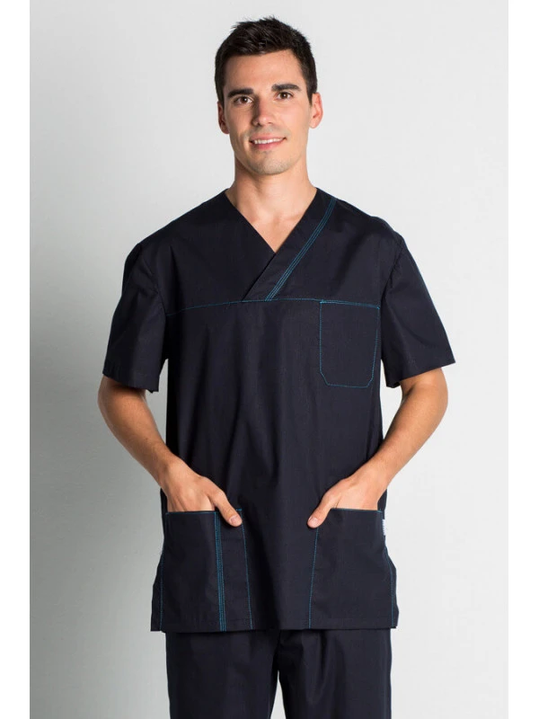 Cette casaque médicale de couleur bleu marine sublimera votre style au travail grace à sa coupe et son tissu stretch. Ses surpiqures au niveau du col en V ,de sa poche plaquée au niveau du coeur et de ses deux poches basses, donne un style trés tendance à votre tenue médicale.