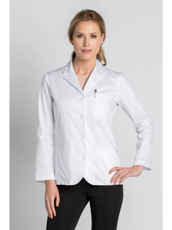 Cette veste de travail femme est idéale comme tenue de pharmacienne ou blouse médicale. Mylookpro vous recommande cette veste de travail blanches à manches longues en coton. La tunique médicale femme possède une poche poitrine et deux poches basses. La fermeture se fait à l’aide de boutons au centre. Le style classique de ce vêtement de travail femme est élégant pour exercer son métier de façon professionnelle.
