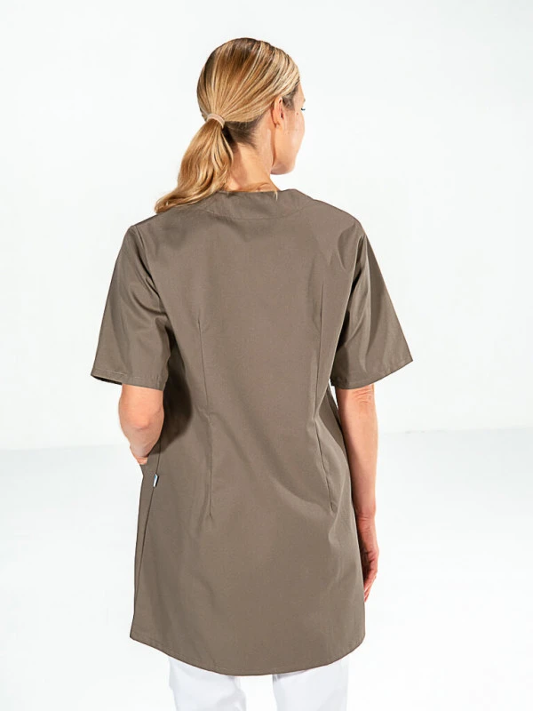 Sa découpe féminine et pratique lui permet de se porter aisément comme blouse professionnelle en milieux médical, pour infirmière, aide-soignante, manipulateur radio, kinésithérapeute, préparateur en pharmacie par exemple, etc…