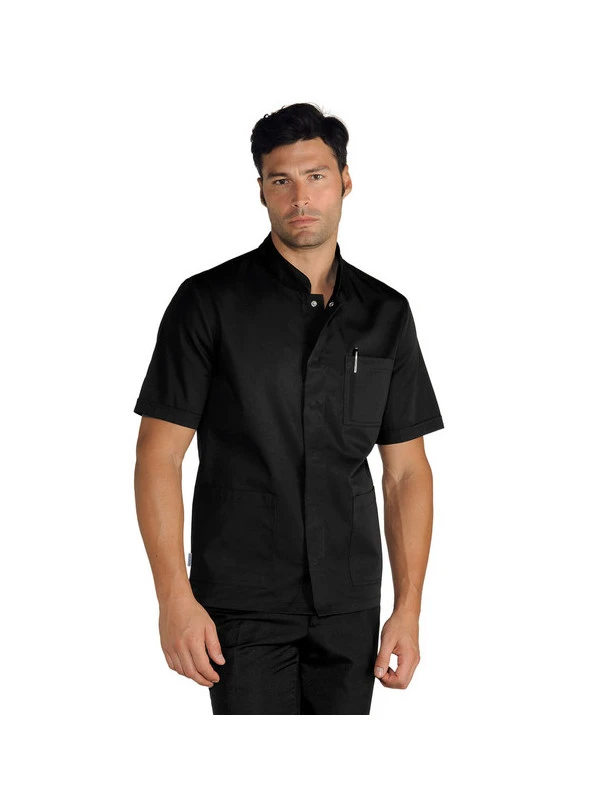 La Blouse médicale à manches courtes Corfu noir pour homme est conçu en Polycoton. Composé de 65 % de polyester et de 35 % de coton, cette matière offre la combinaison idéale pour allier durabilité et confort de port. Cette tenue médicale se démarque aussi par sa coupe droite, agrémentée d’un col officier très tendance. Ses trois poches plaquées très pratiques n’entament en rien le rendu esthétique de la tenue.