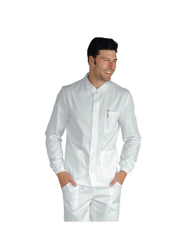 Blouse Médicale manches longues pour Homme, poignets elastique, Corfu blanche