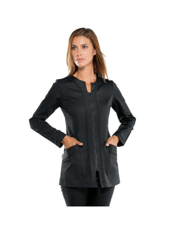 Blouse médicale noire à glissière sur le devant