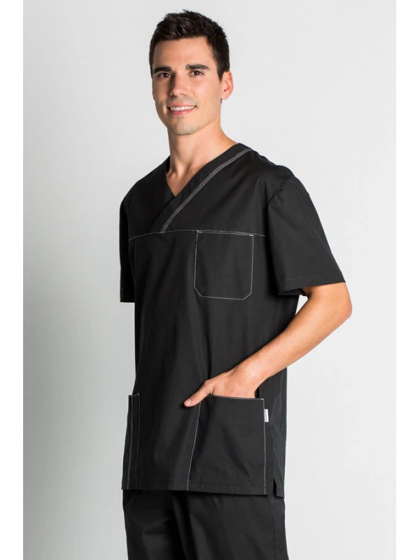 Cette tunique médicale de couleur noire sublimera votre style au travail grace à sa coupe et son tissu stretch. Ses surpiqures au niveau du col en V ,de sa poche plaquée au niveau du coeur et de ses deux poches basses, donne un style trés tendance à votre tenue médicale noire en stretch.