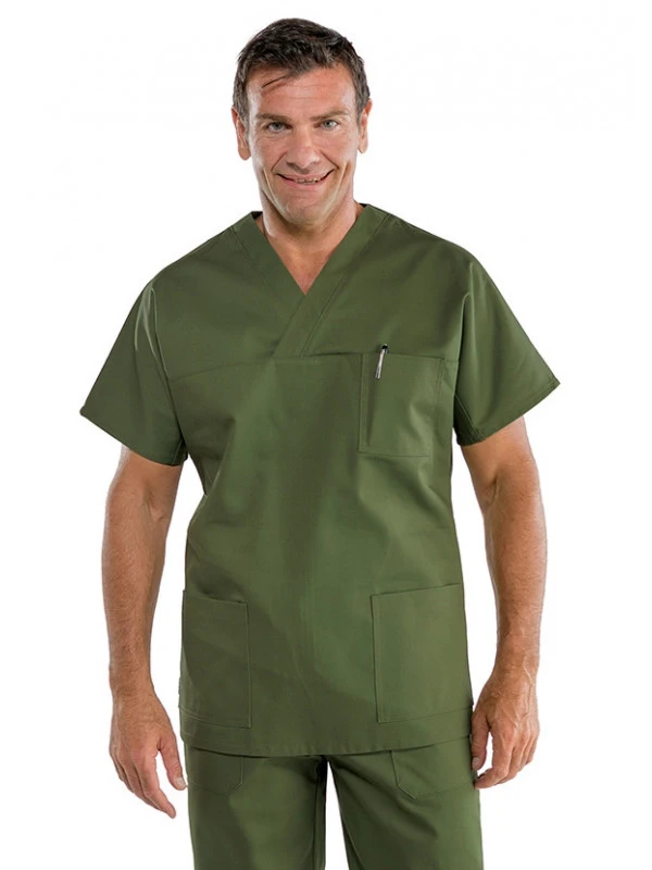 Originellement dédiée aux vétérinaires et aux professionnels évoluant dans ce secteur, cette tunique médicale verte peut aussi se porter par des gens travaillant dans d?autres domaines. Pharmacien, dentiste, infirmier, ainsi que les gens exerçant dans les établissements médico-sociaux peuvent se parer avec ce sarrau médical confortable et léger. Ainsi, elle peut servir aussi bien de blouse de véterinaire que de blouse dentiste, ou autres. Confectionnée dans du polycoton (65 % de polyester et 35 % de coton), cette blouse médicale pas cher met fort bien à l?aise la personne qui la porte. Sa manche courte et sa coupe casaque ne gênent pas les mouvements. Par ailleurs, avec son col en V, elle s?enfile simplement en deux temps trois mouvements. Ses 3 poches de devant permettent de toujours avoir sur soi les petits calepins et stylo pour tout noter, ainsi que les matériels médicaux dont le professionnel peut avoir besoin à tout moment.