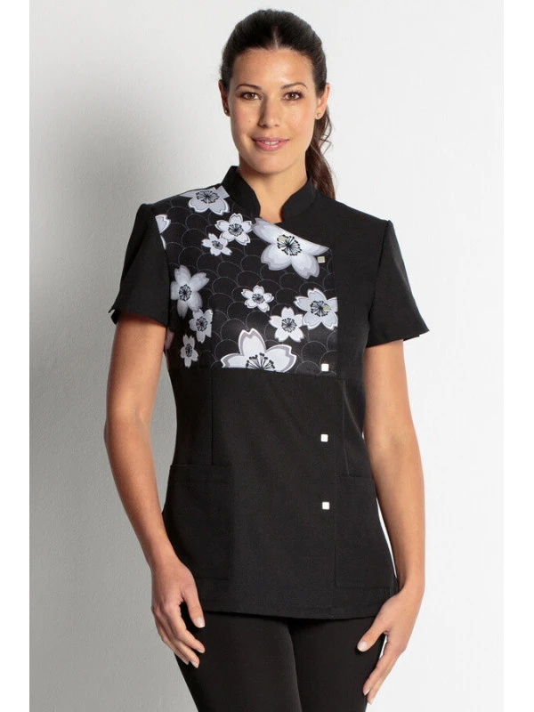 Blouse d’Estheticienne Col Mao natural, coupe ajoutée qui sublime votre silhouette.