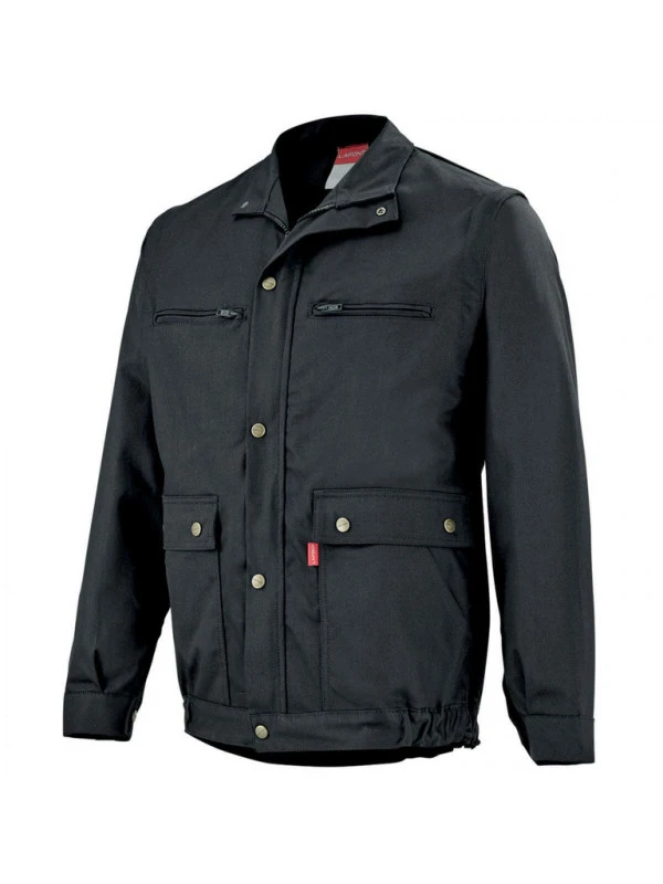 Col montant Fermeture à glissière sous-patte fermée par pressions plastiques Manches montées amovibles Poignets rapportés fermés par pressions plastiques 2 poches poitrine passepoilées zippées 2 poches basses doubles à rabat fermé par pressions plastiques et surpoches repose-mains Ceinture élastiquée côtés.