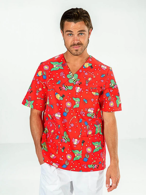 Cette tunique de travail homme, aux jolis motifs enfantins, convient parfaitement pour être portée comme tunique pédiatre et comme tunique puériculture. Disponible en deux versions, une tunique rouge ou une tunique jaune, cette tunique professionnelle manches courtes possède un excellent rapport qualité/prix. Il s’agit d’un modèle à enfiler, pratique et vous garantissant une bonne protection au quotidien.