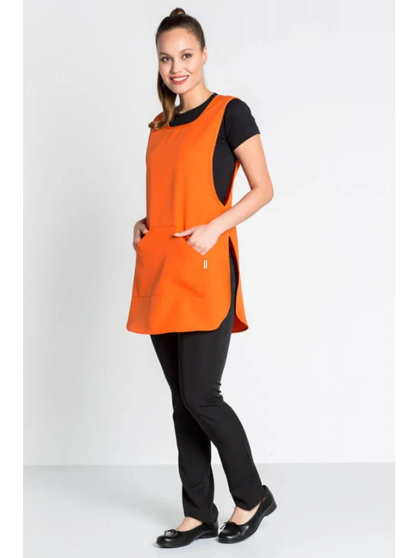 Chasuble Orange pour le commerce et l’esthétique. Encolure ronde. Fermeture latérale réglable avec des boutons. Une poche centrale assortie. Un classique absolu pour des métiers tels que dans l’alimentaire, la coiffure, l’esthétisme, l’optique, la pharmacie ou en milieu hospitalier.