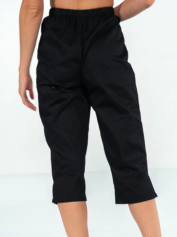 N’attendez plus pour tester ce pantacourt de travail confortable, qui deviendra un indispensable dans votre dressing professionnel. Ce vêtement professionnel possède une ceinture élastiquée, et des fentes sur le bas des jambes. Ce pantacourt médical noir est pratique et léger pour vous accompagner dans votre travail au quotidien.