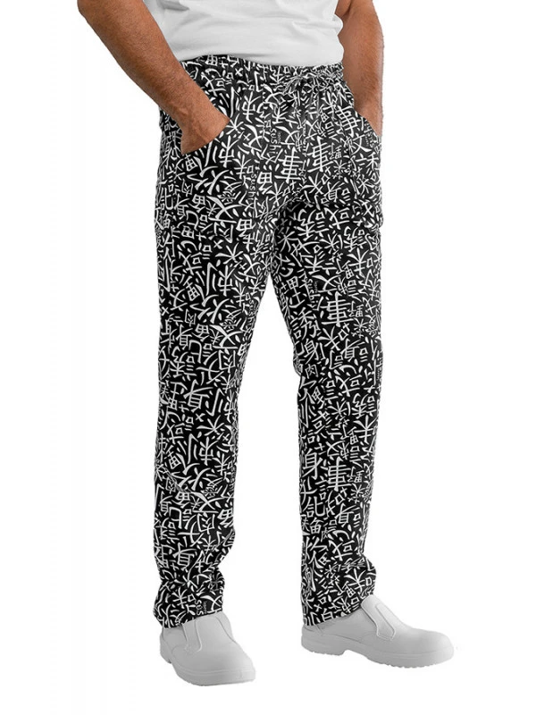 Les motifs japonais Kanji présents sur ce vêtement professionnel de cuisine vous donneront un style unique qui s’adaptera parfaitement à la cuisine asiatique et vous garantira un look à la fois classique et unique ! Si vous souhaitez un style un peu plus coloré, ce pantalon existe aussi en noir et rouge sur notre site. Sa matière rend ce pantalon facilement lavable en machine à 60 degrés avec un séchage possible jusqu’à 60 degrés.