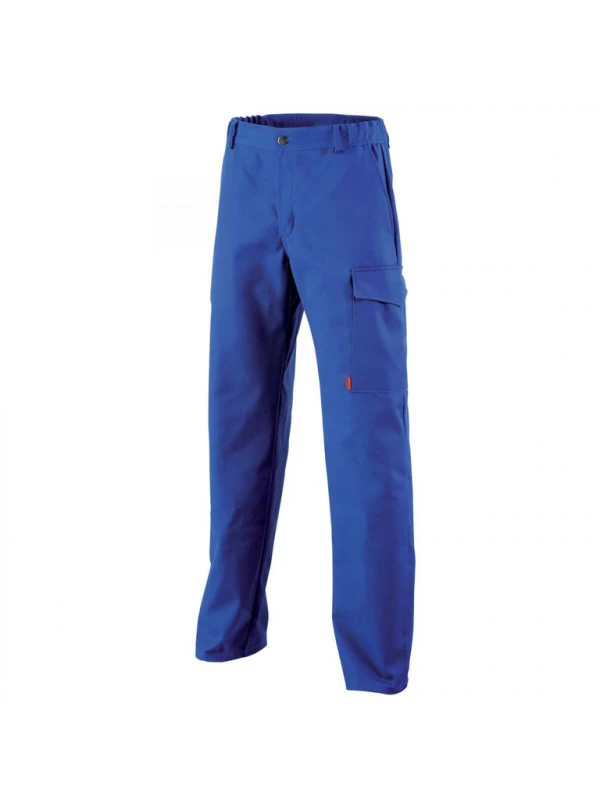 Ceinture élastiquée côtés Braguette grippers Collerette de marquage 2 poches italiennes 1 poche cuisse à rabat fermé par grippers 1 poche mètre 1 poche revolver Conforme à la norme entretien industriel EN 15797.
