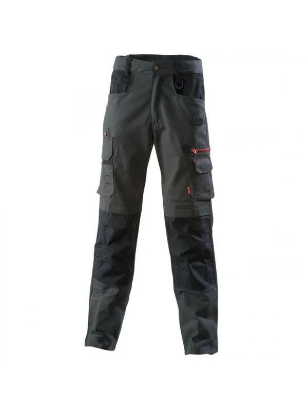Ceinture élastiquée côtés avec rehausse dos 2 poches cavalières, dont 1 avec poche monnaie Sangle porte-outils 1 poche cuisse à soufflets et à rabat fermé par velcro, avec poche mètre intégrée et surpoches 1 poche cuisse zippée à soufflets avec surpoches, dont 1 à rabat 1 poche revolver à rabat fermé par velcro Poches genoux en tissu renforcé, adaptées à la norme EN 14404 : 2 niveaux de réglage en hauteur, avec ouverture facile par le haut Fermeture par velcro Triangle d’aisance à l’entrejambe Renforts polyester haute résistance sur bas arrière du pantalon Patch WORK ATTITUDE à l’arrière.