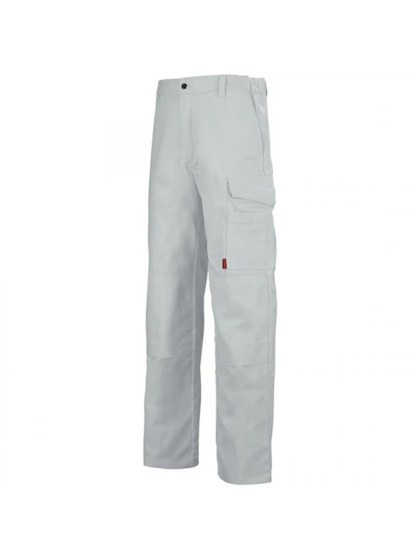 Ceinture élastiquée côtés Braguette zippée 2 poches italiennes 1 poche cuisse gauche à soufflets dos à rabat fermé par velcro, avec surpoche smartphone 1 double poche mètre 1 poche revolver Poches genoux fermées par velcro Mercerie tout plastique.