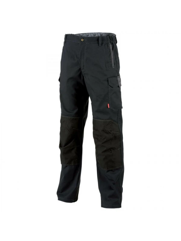 Ceinture élastiquée côtés 2 poches italiennes : poche italienne gauche à double entrée, dont 1 zippée 2 poches cuisse à rabat, dont 1 (poche cuisse droite) avec surpoche portable et poche mètre intégrée Poche arrière à rabat Poches genoux en CORDURA®, conformes à la norme EN 14404 : 2 niveaux de réglage en hauteur, avec ouverture facile par le bas Renforts bas de jambes en CORDURA® Triangle daisance à lentrejambe Triples surpiqûres aux endroits sensibles Broderie Lafont à larrière Dessous des rabats, poches italiennes, intérieur de la ceinture en tissu imprimé Lafont.