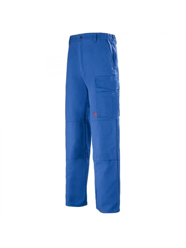 Ceinture élastiquée côtés Braguette zippée 2 poches italiennes 1 poche cuisse gauche à soufflets dos à rabat fermé par velcro, avec surpoche smartphone 1 double poche mètre 1 poche revolver Poches genoux fermées par velcro Mercerie tout plastique.