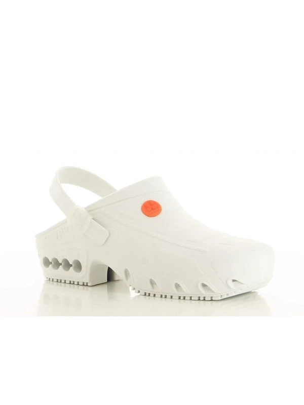 Ce sabot de travail OXYCLOG de Oxypas est un sabot de bloc opératoire pourvu d?une bride réglable à l?arrière du pied et d?une semelle anatomique pour un excellent maintien du pied. Ce sabot répond à tous les besoins du bloc opératoire. Ce modèle est stérilisable chimiquement et par UV, autoclavable jusqu’à 135 dégres et lavable en machine à 90° C. La semelle antidérapante en TPR garantit une adhérence maximale, tant sur des sols secs que sur des sols humides. Le dessus est complètement fermé pour protéger le pied, mais sur le côté le sabot est pourvu de perforations pour garantir une ventilation optimale.