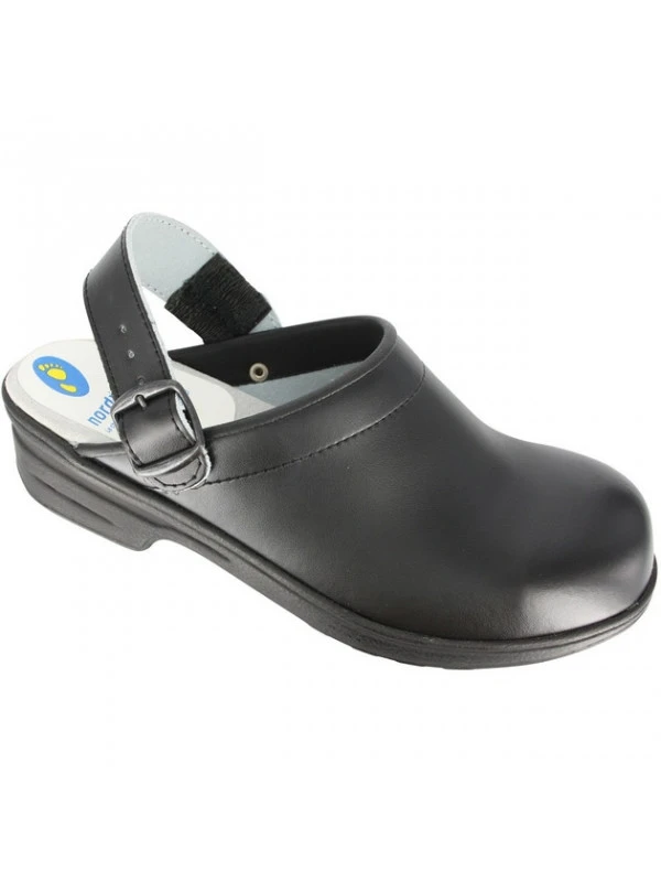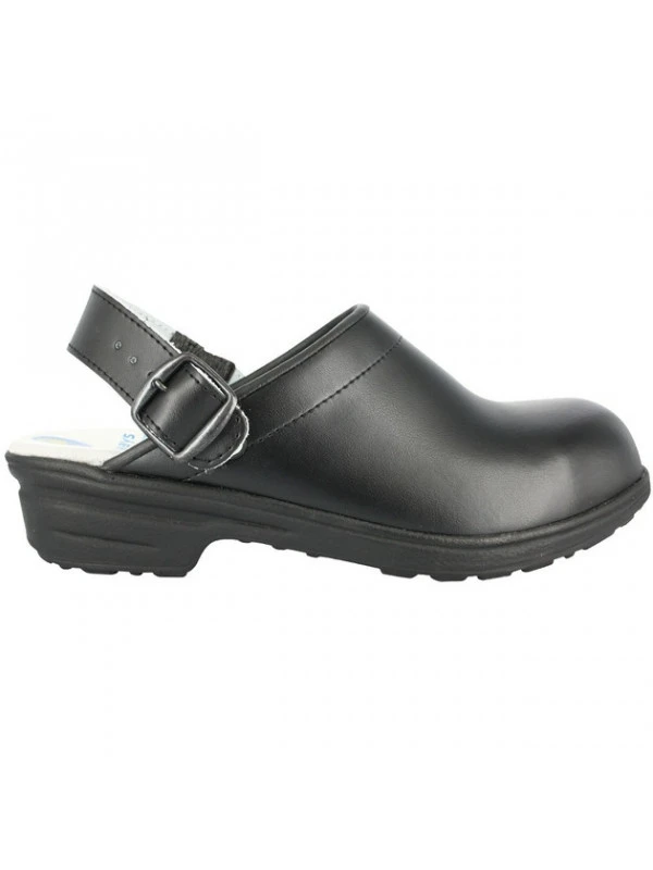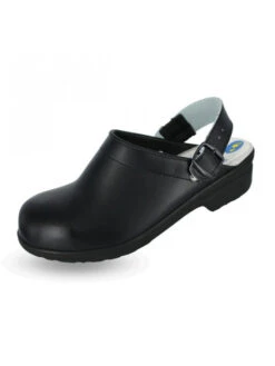 avec embout de sécurité pour femmes & hommes, entièrement en cuir, avec bride arrière pivotante élastiquée et réglable vous garantit un confort optimal, adapté aux métiers de Restauration et Agroalimentaire & Paramédical.