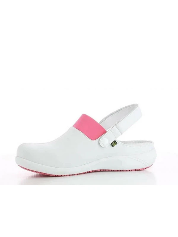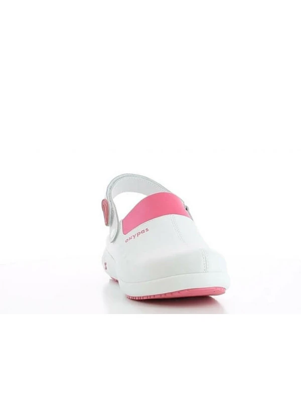 Choisissez ce sabot de travail en cuir blanc et rose de la marque Oxypas !