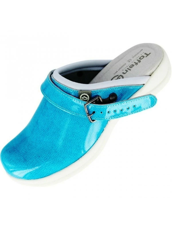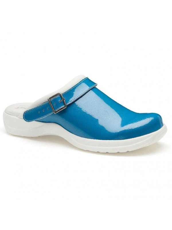 Sabot souple de travail Femme Maeva bleu Nordways Sabot hôpital en cuir brillant, qui vous apporte un look actuel, traitement hydrofuge, antistatique et antidérapant. Sabot très léger pour vous assurer un confort quotidien.