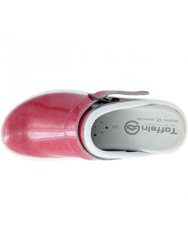 Sabot souple de travail Femme Maeva Rouge Nordways Sabot hôpital en cuir brillant, qui vous apporte un look actuel, traitement hydrofuge, antistatique et antidérapant. Sabot très léger pour vous assurer un confort quotidien.