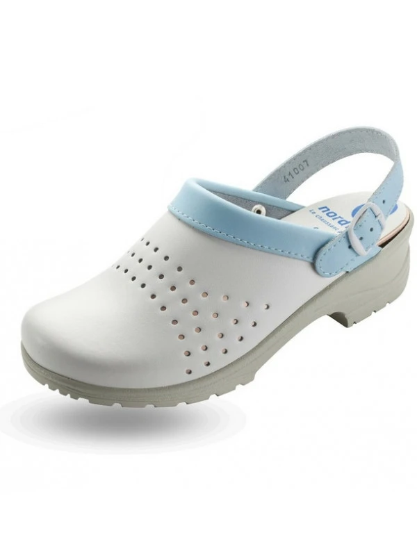 Ce sabot entièrement en cuir traité avec un film polyuréthane protecteur, dispose de perforations sur le côté pour une aération permanente, et conçu d?une bride arrière pivotante réglable par une boucle. Ce sabot est parmi les plus appréciés des métiers Hygiène, Paramédical, Laboratoire, Crèches, Collectivités cantines,