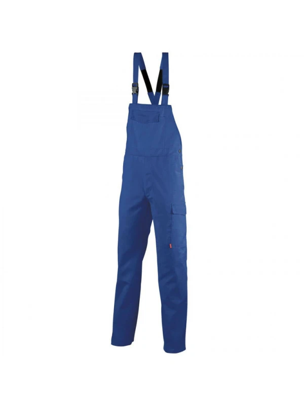 Bretelles avec boucles clic-clac 1 poche bavette fermée par grippers cachés 2 poches italiennes 1 poche cuisse à soufflet dos à rabat fermé par grippes cachés 1 poche mètre 1 poche revolver Conforme à la norme entretien industriel EN 15797.