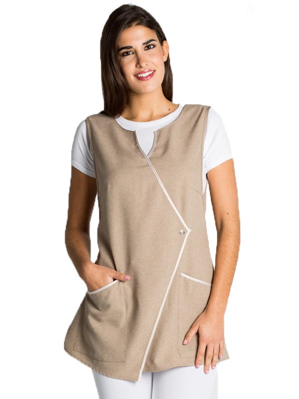 Ce tablier d’esthéticienne beige croisé sur le devant possède une couleur beige très élégante.