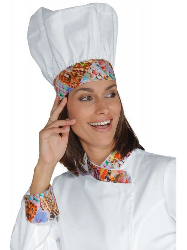 Cette toque mettra de la couleur dans vos cuisines, très pratique elle est ajustable grâce a un système de fermeture velcro et est 100% lavable pour une hygiène impeccable.