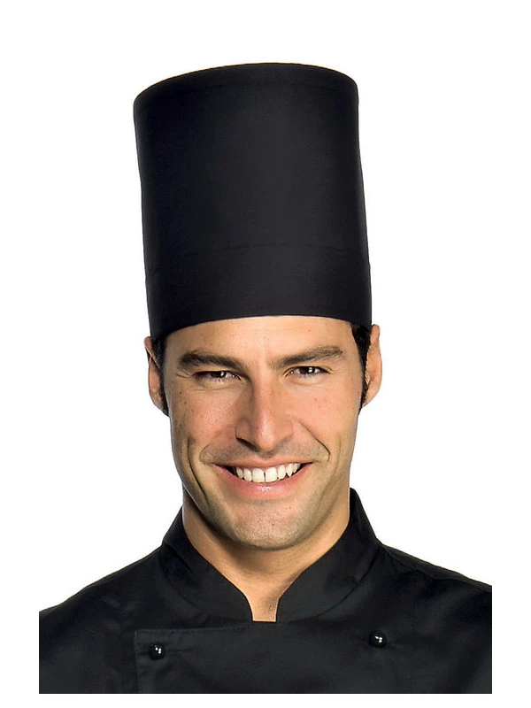 Cette toque de cuisine noire de chef cuisinier sera l’accessoire idéal pour votre tenue de cuisinier en chef