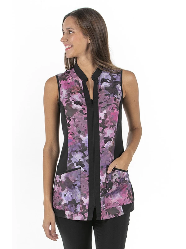 Cette tunique sans manche est très originale grâce à ses motifs aquarelles lila.