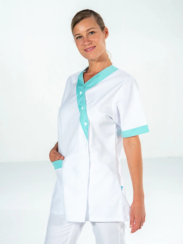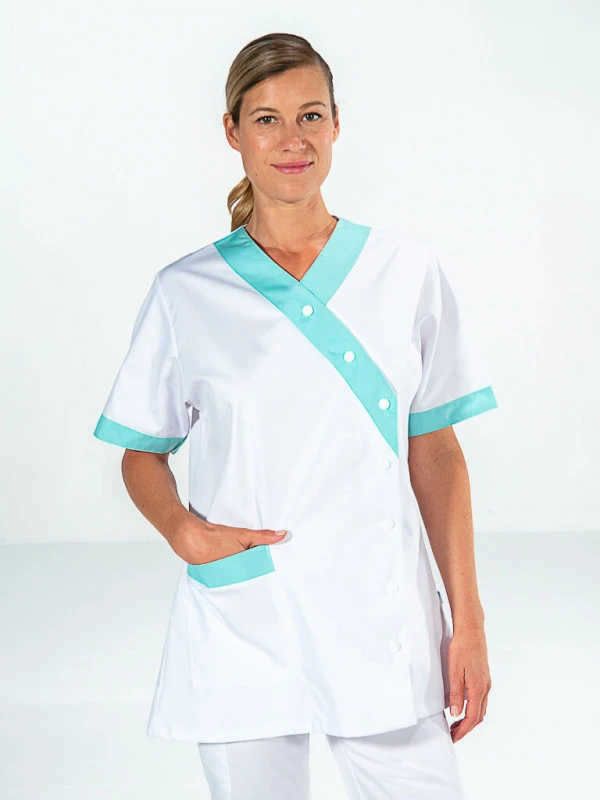 - Domaine d’utilisation : vêtement professionnel pour métiers du médical, tunique aide-soignante, tunique d’infirmière, ou encore idéale comme tunique dans le paramédical, tunique de préparatrice, service à la personne.