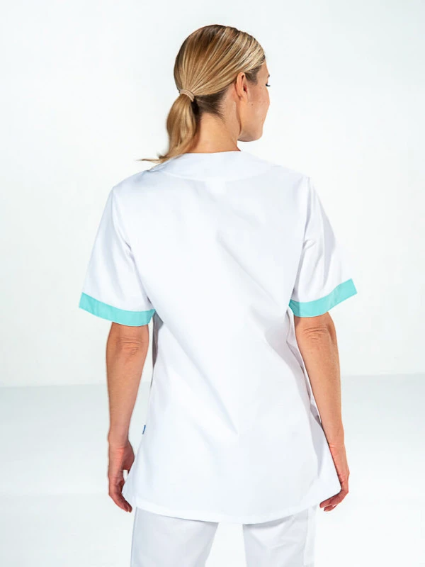 Mylookpro vous recommande cette jolie tunique pour aide-soignante au très bon rapport qualité prix. Elégante avec une découpe féminine et originale, elle est également confortable pour vous accompagner dans votre métier au quotidien. Mylookpro apprécie le bicolore, sobre et élégant de cette tunique de travail aide-soignante, ce qui la rend parfaite pour les métiers du milieu médical, paramédical, ou encore service à la personne. Les boutons pressions sont blancs sont pratiques pour enfiler et retirer rapidement votre tunique professionnelle.