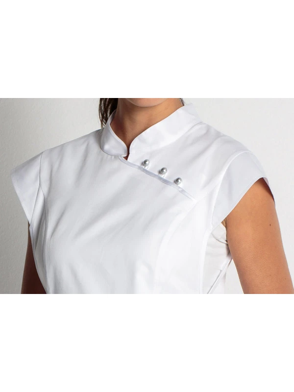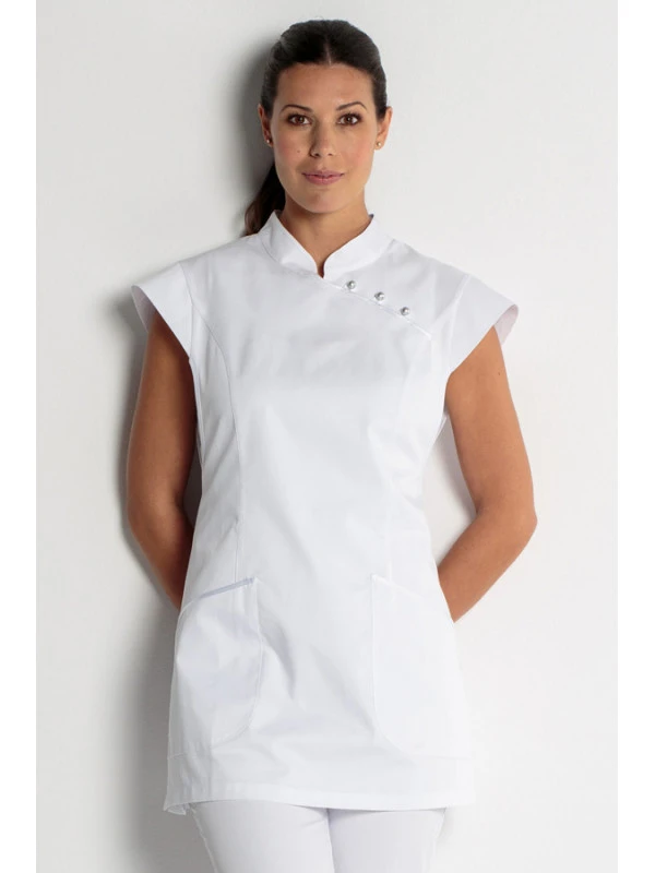 Cette tunique blanche pour esthéticienne inspire la légèreté, et donc une grande liberté de mouvement. Ses encolures dégagées et ses manches plus amples contribuent d’ailleurs à ces effets. Autre aspect pratique : il sera possible de porter cette tunique seule, à l’instar d’une robe courte. Enfin, la conception à base de polyester et de coton permet de passer la tunique au lave-linge.