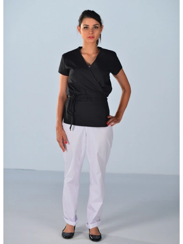 La tunique Kimono cache-cœur noire est l’une des blouses esthétiques professionnelles, moderne et tendance les plus choisies par nos clientes. Vous travaillez dans le milieu de l’esthétique et des SPA, procurez-vous de cette blouse esthetique, afin de révéler votre personnalité et votre beauté dans le monde professionnel.