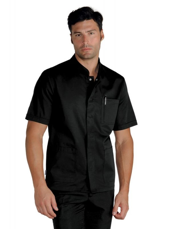 - Informations détaillées : Col mao, manches courtes, fermeture boutons pressions, 3 poches
