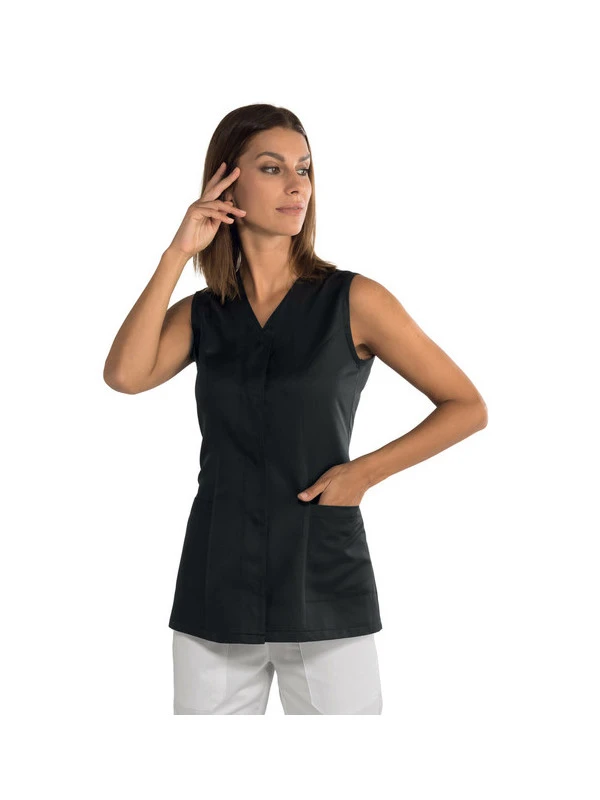 Moderne, et feminine, cette tunique d’esthetique sans manche est en microfibre. Cette matière permet à cette tunique d’esthetique d’être facile à repasser et de resister à de nombreux lavages à la main, comme à la machine.