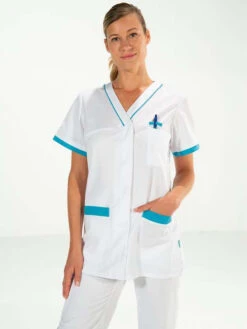 Tunique Blanche et Turquoise Alexandra, son style moderne mettra en valeur votre silhouette !