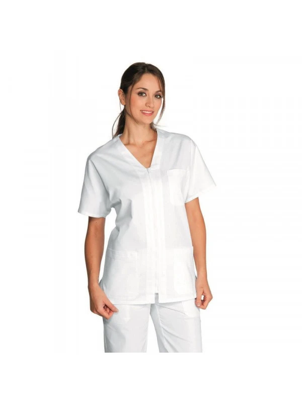 Blouse blanche médicale Unisexe à Fermeture éclair ultra pratique pour femme