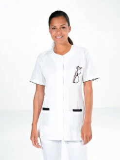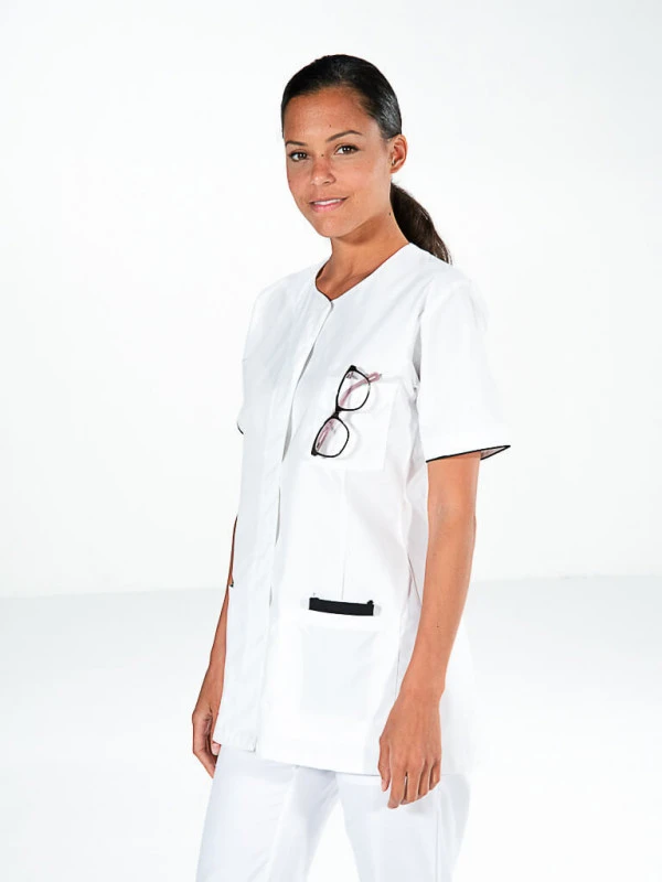 Découvrez la tunique médicale blanche élégante à manches courtes