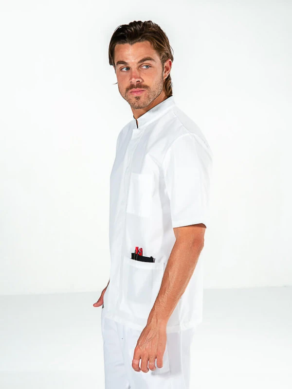 Découvrez cette tunique médicale blanche pour homme à manches courtes