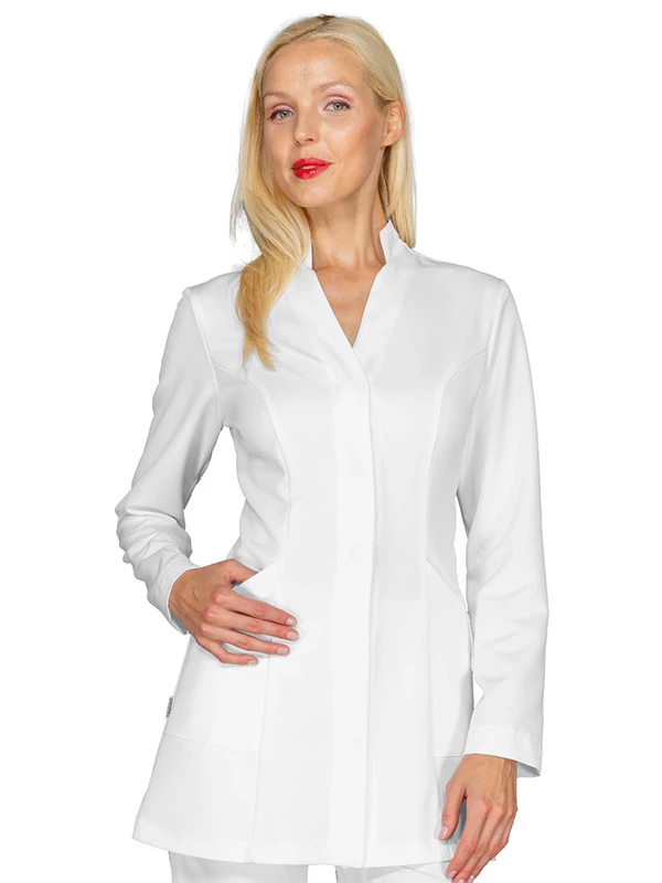 Cette tunique médicale blanche à manche longue est parfaite pour les médecins, infirmières, pharmaciennes.